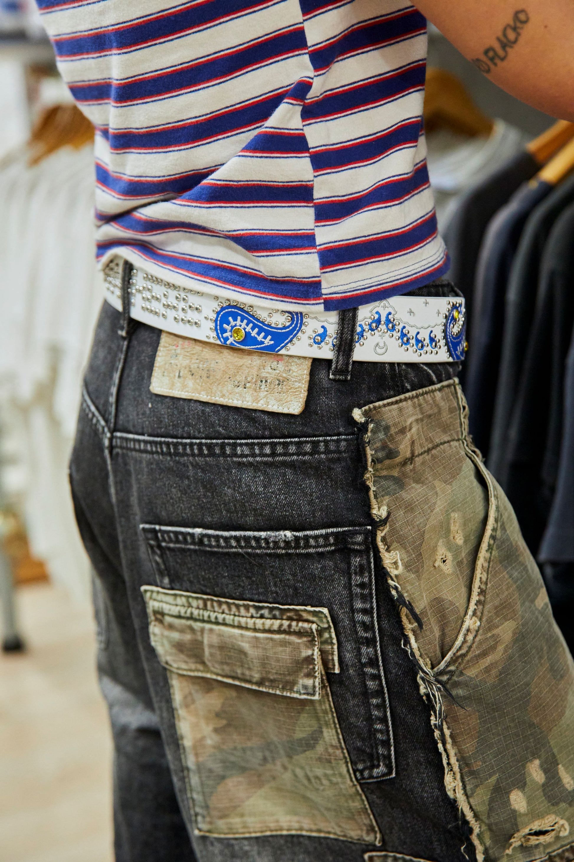 WHITE PAISLEY RIVET BELT
